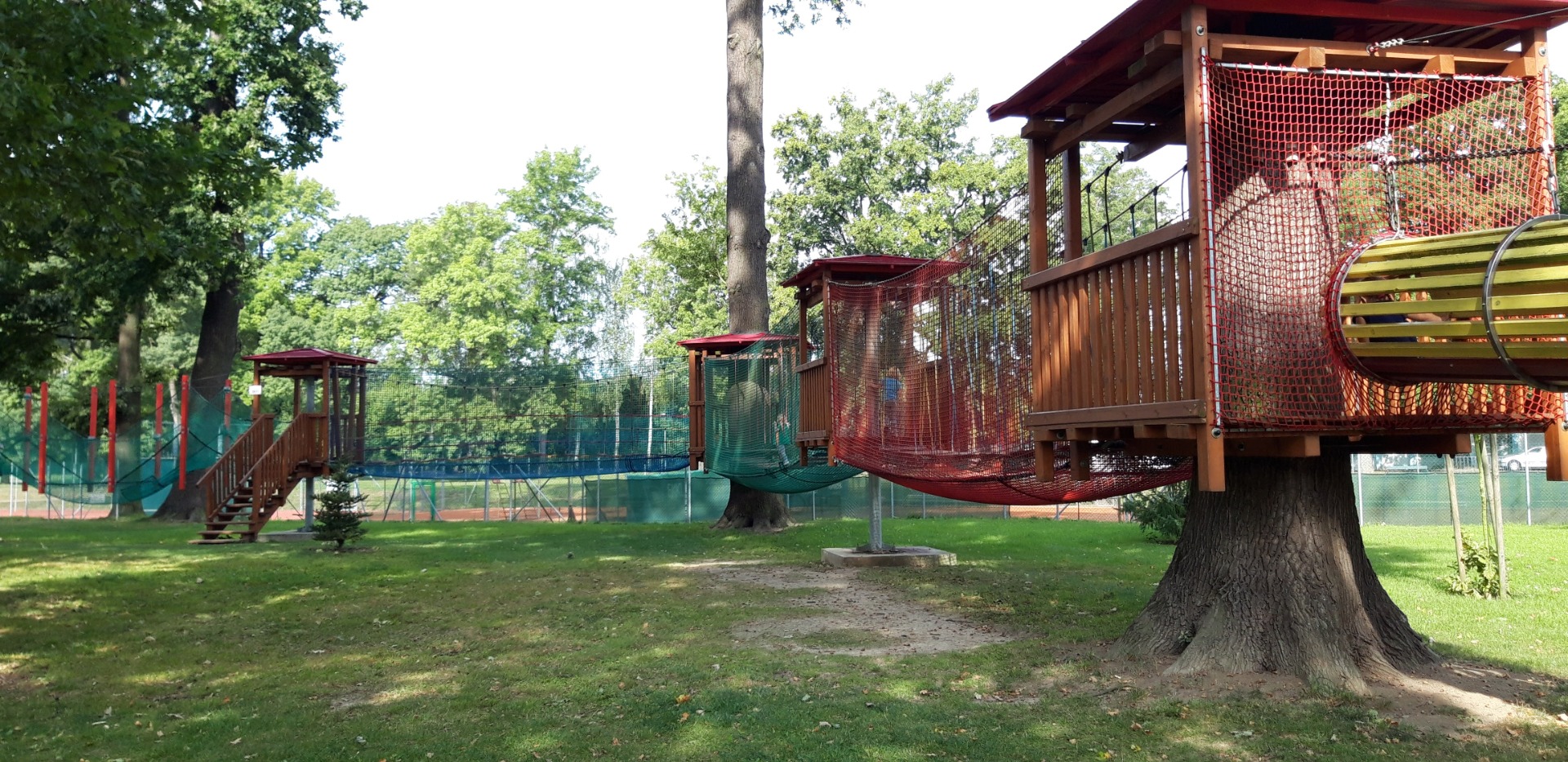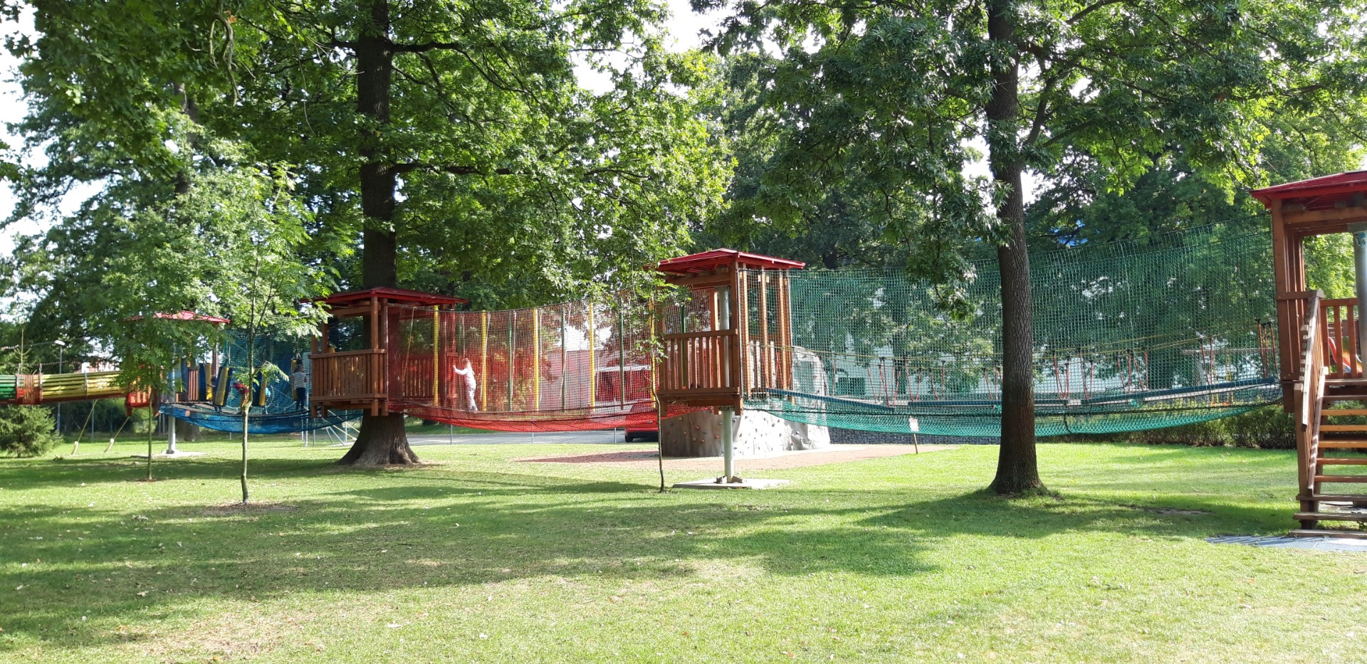 Poté, co se všichni posilnili výbornou svačinkou, kterou nám přichystaly naše šikovné paní kuchařky, paní učitelky poučily děti o tom, jak se máme v Lanáčku chovat. Jakmile se děti rozběhly areálu, začalo nám přát i počasí a celý výlet nám svítilo sluníčko. Ty nejstarší děti hned zaujaly závodní auta a motokáry. Děti si mohly vyzkoušet nejrůznější druhy skákacích trampolín, které byly chytře řešeny i pro ty nejmenší. Největší a také nejoblíbenější částí byla samotná lanová dráha. Děti musely překonávat nejrůznější překážky, balancovat, podlézat a na konci je čekal lanový sjezd nebo dlouhá skluzavka. Pro mnohé z nich, byly některé překážky složitější, ale nebály se a zvládly to za pomoci paní učitelek. Některé děti překonaly samy sebe a dráhu úspěšně prošly bez dopomoci.